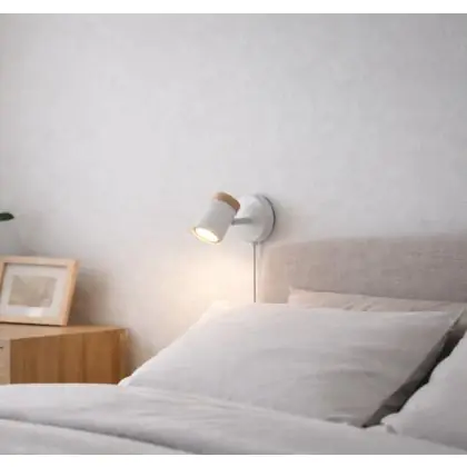 Beschrijving D'Lite Wandlamp Beitem Metaal Mat Wit FSC Hout | Geschikt Voor 1x GU10