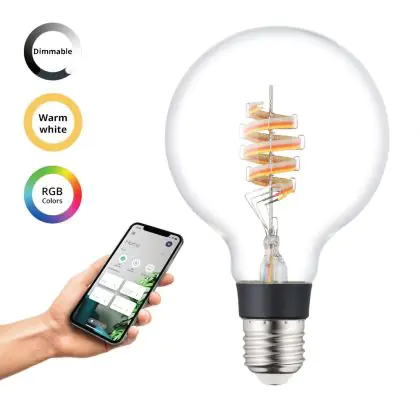 Naast de kleurtemperatuur speelt het uiterlijk van de lamp een belangrijke rol. Ga je voor mat glas of liever helder/gekleurd glas, waardoor je het LED filament (de oranje kooldraad) goed kunt zien? Heb je ook al nagedacht over de vorm en grootte? Deze E27 lamp heeft als vorm: Globe. Ten slotte heb je bij ons een zeer ruime keus aan dimbare E27 LED lampen. Hierbij heb je een LED dimmer nodig. Wil je extra informatie over E27 LED? Lees dan onze blog: Hoe vind ik de juiste E27 lamp?