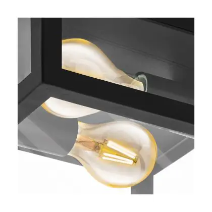 Beschrijving Eglo Wand en Plafondlamp Amezola Staal Zwart | IP44 - Geschikt voor 2x E27