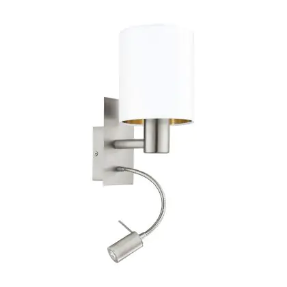 Eglo Wandlamp Pasteri Staal Satijn Nikkel 40 | IP20 - Incl. Spot en Excl. 1x E27