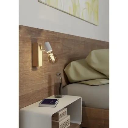 Beschrijving Eglo Wandlamp Townshend 3 Hout Staal Wit | IP20 - Geschikt voor 1x E27