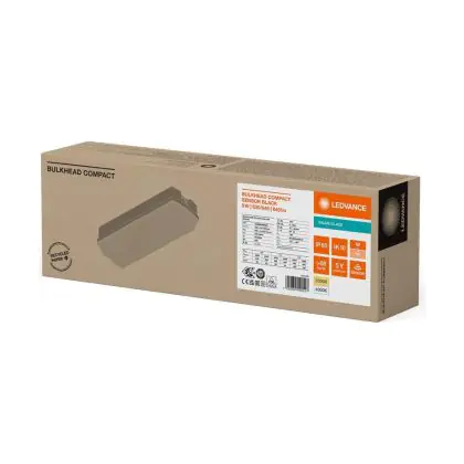 Beschrijving Ledvance LED Bulkhead Zwart 9W 840lm - 830-840 CCT | Bewegingssensor