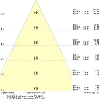 De gradenbundel geeft informatie over hoe breed het licht wordt uitgestraald. Dit zit tussen de 0 en 360 graden (D). Hoe kleiner de hoek, hoe specifieker de lichtbundel is. Over het algemeen is een smalle gradenbundel perfect voor sfeer- of accentverlichting, terwijl een brede gradenbundel ideaal is om grote oppervlaktes te verlichten.