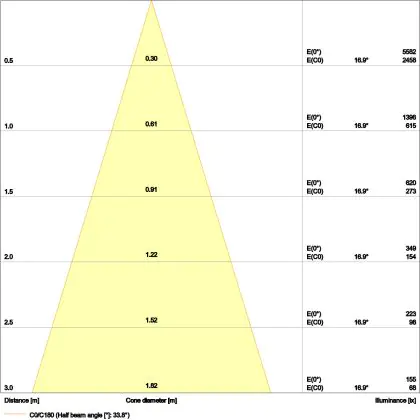 De lichtopbrengst en de gradenbundel spelen een grote rol. Zo geeft de lichtopbrengst van 720 Lumen in combinatie met de 36° stralingshoek deze inbouwspot een specifieke toepassing. Kort samengevat is een lichtintensiteit van maximaal 400 Lumen ideaal voor accentverlichting, terwijl hogere waardes goed gebruikt kunnen worden als basisverlichting. Over het algemeen geldt: hoe breder de gradenbundel, hoe geschikter deze is door basisverlichting. Dit komt doordat het licht over een groter oppervlak wordt verspreid. Smallere gradenbundels (tot 40°) kunnen echter bij hoge plafonds ook goed tot hun recht komen als algemene verlichting.
