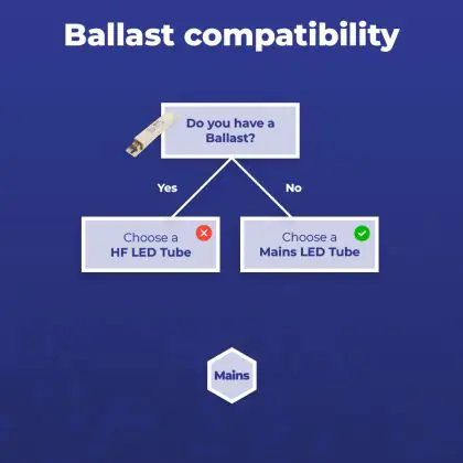 Je hebt een LED starter nodig wanneer de TL verlichting in je huidige armatuur ook een starter bevat. In dat geval gaat het om een armatuur met een conventioneel voorschakelapparaat (EM). Een LED starter vervangt je huidige starter en zorgt ervoor dat een LED TL Buis werkt.
