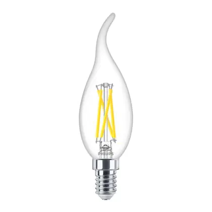 Beschrijving Philips MASTER LED E14 Gebogen-tip Kaars Filament Helder 2.5W 340lm - 922-927 Dim To Warm | Beste Kleurweergave - Dimbaar - Vervangt 25W