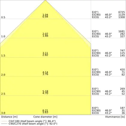 De lichtopbrengst (Lumen), geeft weer hoe krachtig het uitgestraalde licht is. Dit is belangrijk om te weten om de juiste sfeer te creëren. 0 tot 400 Lumen is bij uitstek geschikt voor accent- of sfeerverlichting. Een hoger aantal Lumen is, afhankelijk van de grootte van de ruimte, beter geschikt als ondersteunende- of basisverlichting. Heb je plafonds hoger dan 4 meter, dan is een lichtopbrengst van minimaal 8000lm aan te raden indien heldere verliching gewenst is (vb. in werkomgevingen).