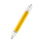 Deze R7s LED lamp is de efficiënte en energiezuinige LED-vervanger van R7s halogeenlampen. Wat opvalt aan deze buisvormige LED verlichting is de lampvoet aan beide uiteinden. Hiermee klik je de lamp vast in een geschikt armatuur. R7s LED staaflampen beschikken over een brede stralingshoek (gradenbundel), waardoor het licht meerdere kanten op schijnt. Dat is onder andere ideaal voor bouwplaatsen, sportvelden of (hoge) wand- en plafondarmaturen. R7s LED lampen met een extra warm witte kleurtemperatuur (2700K) kom je ook tegen in design armaturen voor woonkamers en slaapkamers. De kleurtemperatuur van deze LED lamp is: .