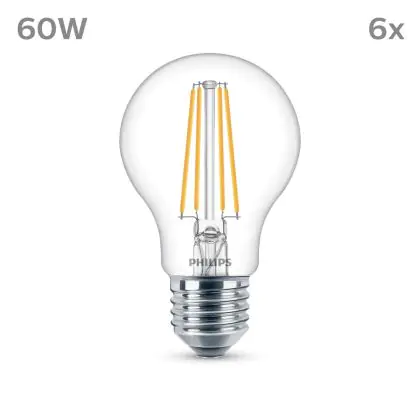 | Fabrikantnaam | Box 6 stuks - Philips LED Lamp Transparant - 60 W - E27 - Koelwit licht | |